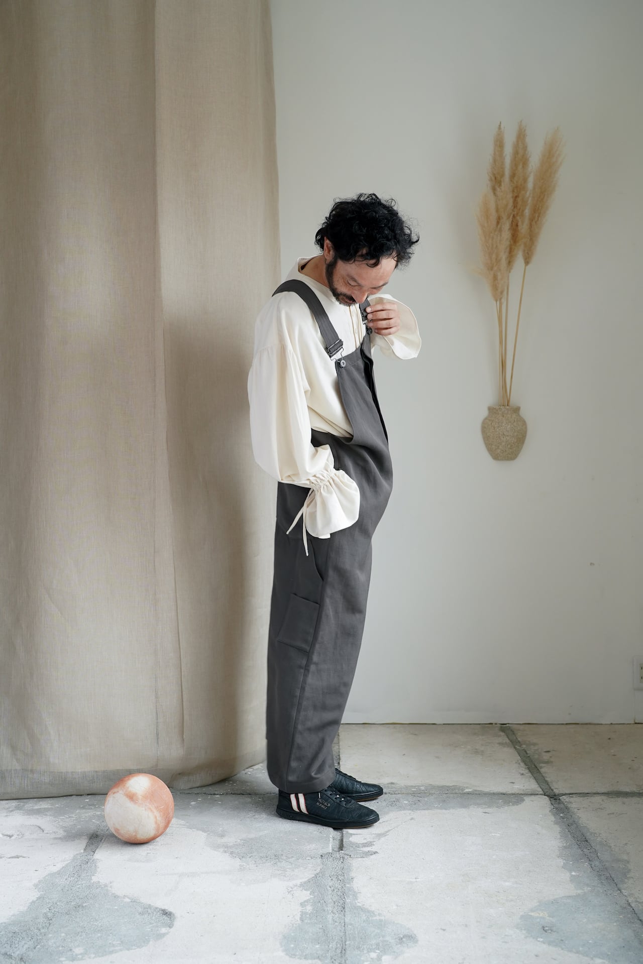 MARU TOの定番のオーバーオールです。所謂オーバーオールとは異なる、カジュアルすぎないシンプルな作りに定評があります。