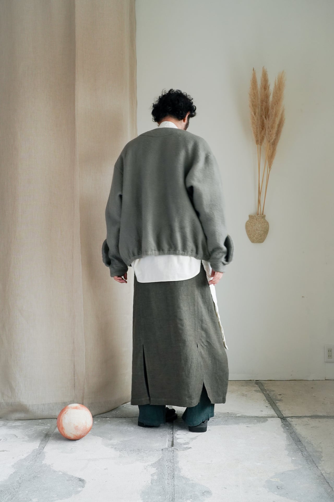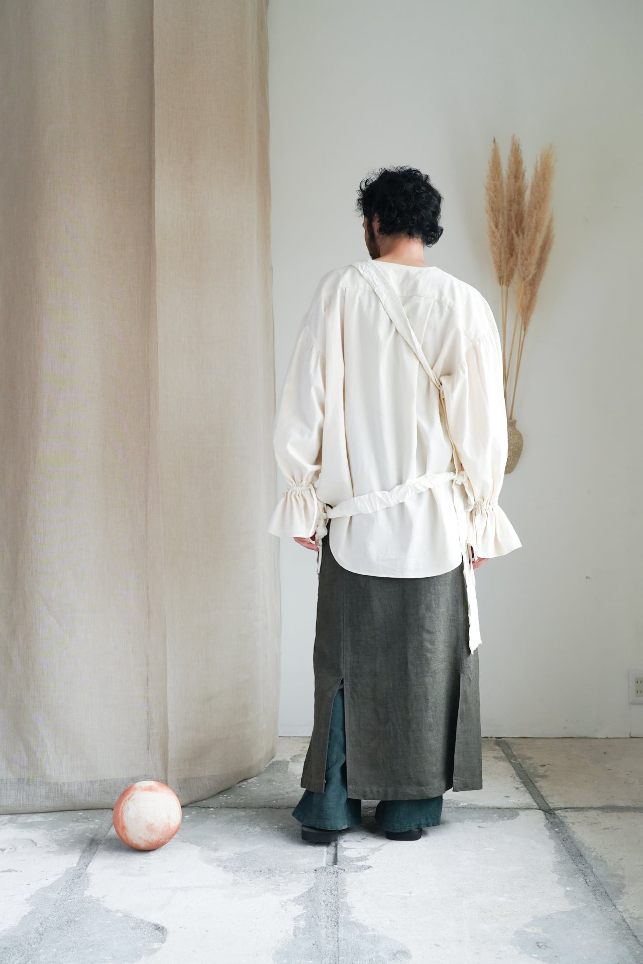 キャッチワッシャーとは、職人が1つ1つ手作業で皺を作り、形状記憶させるプリーツ加工です。天然繊維に加工することで、仕上がりがラフで自然なシワ感となっています。