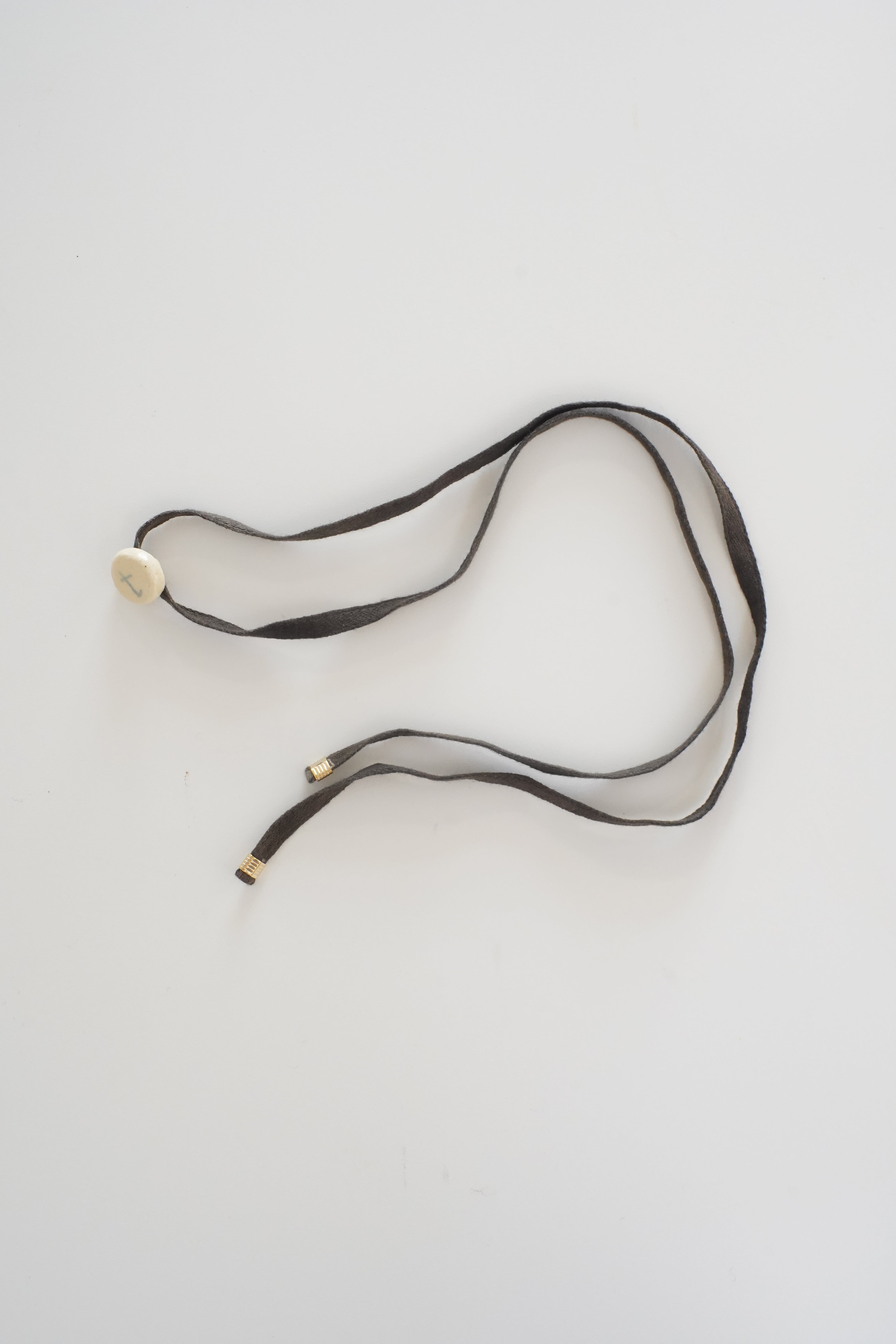 陶芸家 小野晴香さんによる陶器ボタンがころんと1つ。こちらは絵付けです。
