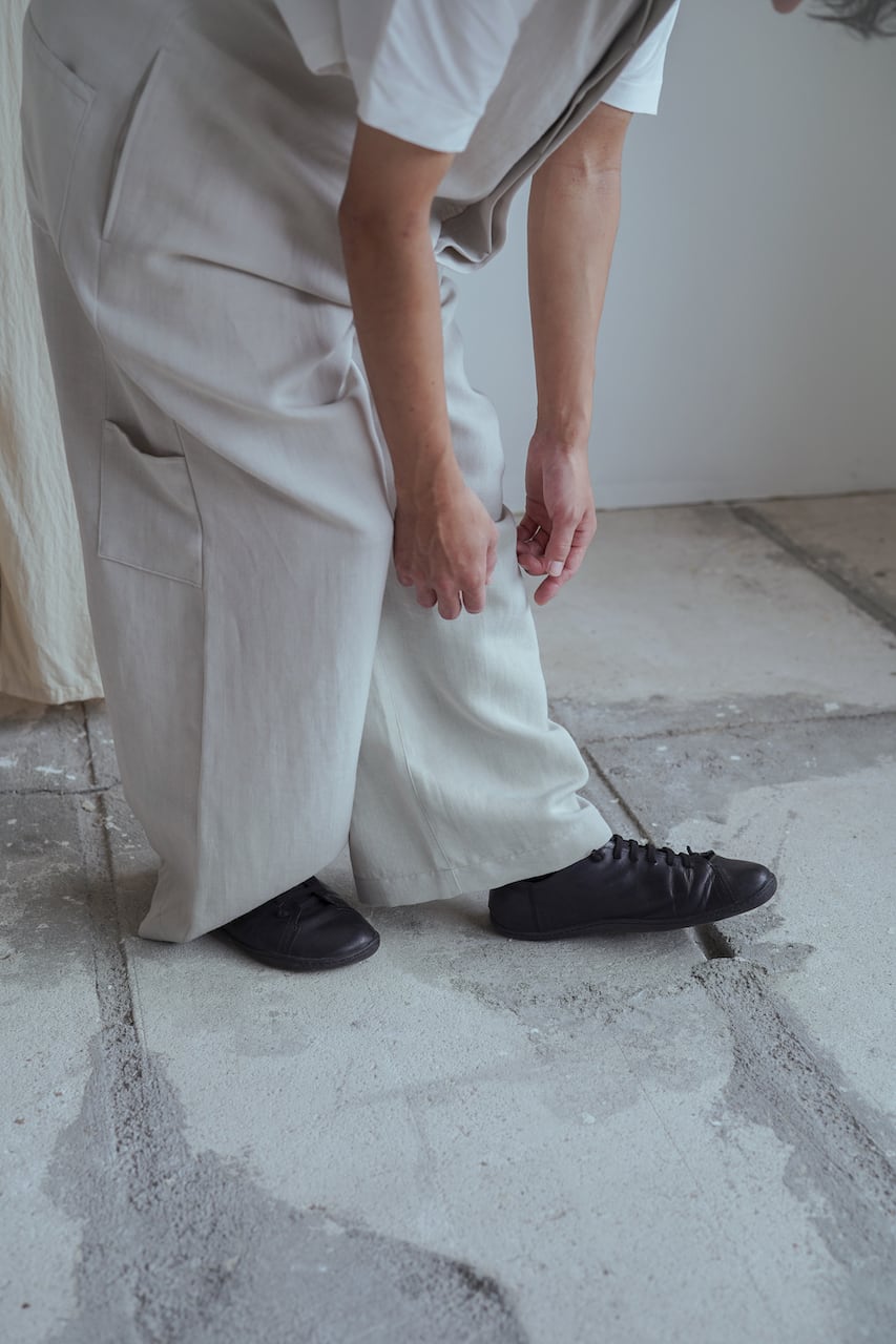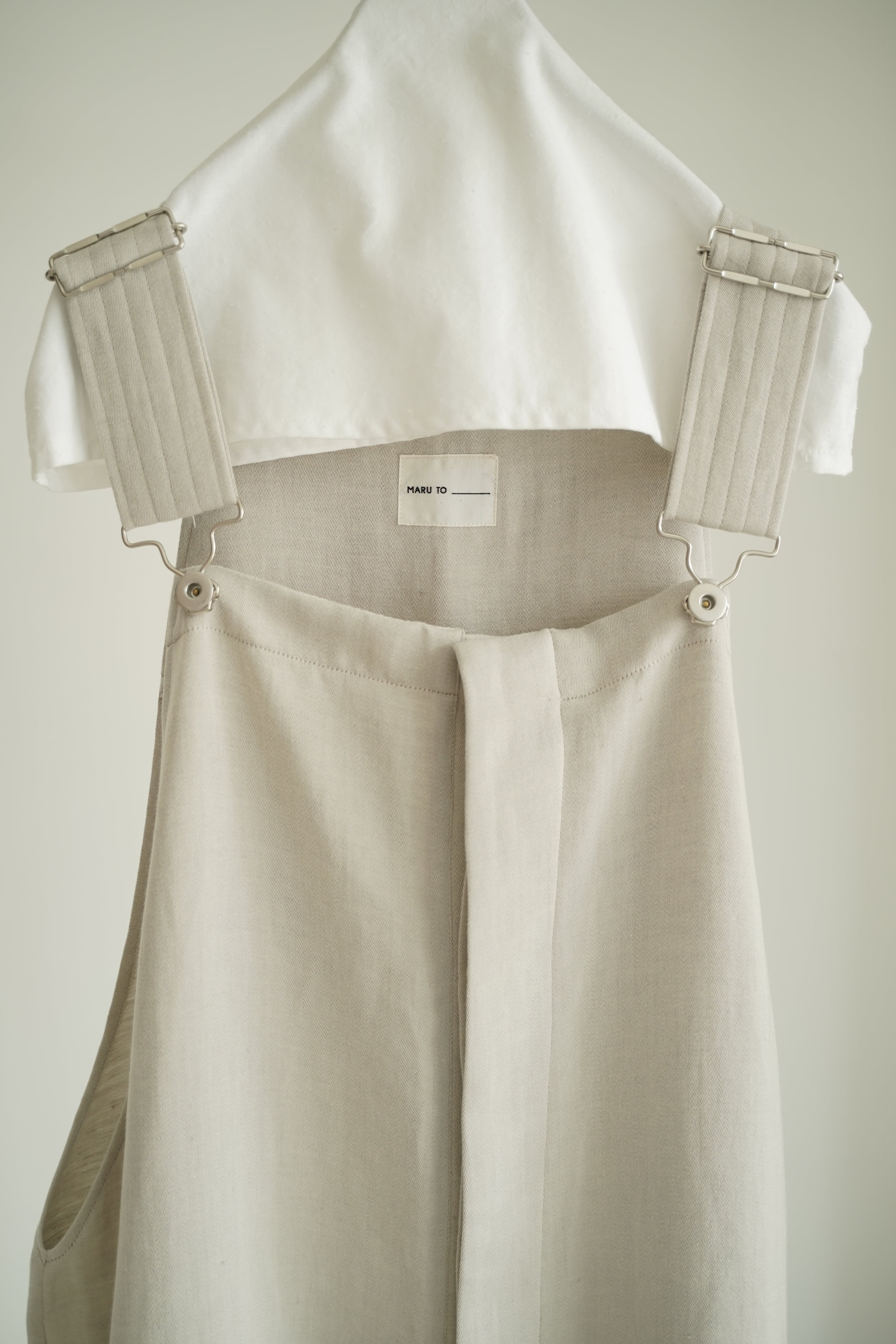 素材を変えたり、その時々でディテールも少しづつ変化する定番型のオーバーオール。カジュアルすぎないシンプルな作りに定評があります。オーストラリアにて工程の全てを行っている上質なウールと国内のリネン糸で織られたツイル生地。カジュアルさと艶感が共存している生地は控えめにも存在感があるのでTシャツなどにラフに合わせても、どこか上品さのある佇まいです。